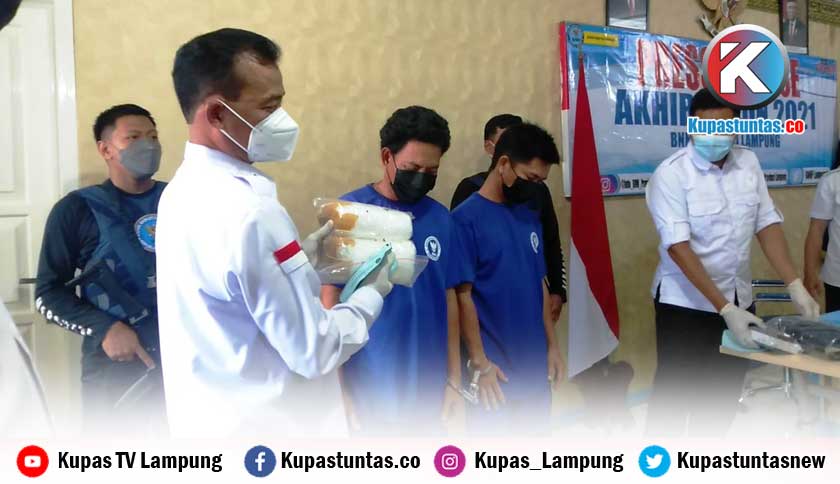 Kupastuntas.co, Bandar Lampung - Mengaku sebagai wartawan, dua kurir narkoba asal Ogan Komering Ulu (OKU), Sumatra Selatan diamankan BNNProvinsi Lampung di Pintu Tol Simpang Pematang KM 240, Desa Mulya Agung, Kecamatan Simpang Pematang, Kabupten Mesuji pada Rabu (8/12/2021) sekira pukul 08.00 WIB.