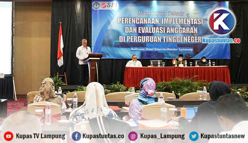 Kupastuntas.co, Bandar Lampung - Satuan Pengendalian Internal (SPI) Universitas Lampung (Unila) menggelar Bimbingan Teknis (Bimtek) Perencanaan, Implementasi dan Evaluasi Anggaran Perguruan Tinggi, di Ballroom Hotel Emersia Bandar Lampung, Rabu (2/11/2022).