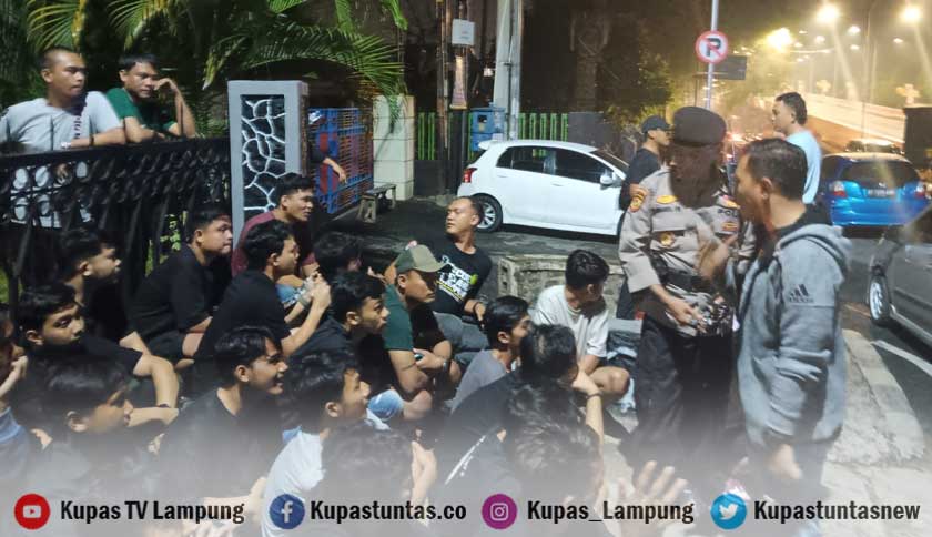 Puluhan pemuda saat diamankan polisi saat sedang pesta miras di sekitaran Pahoman Bandar Lampung. Foto: Martogi/Kupastuntas.co