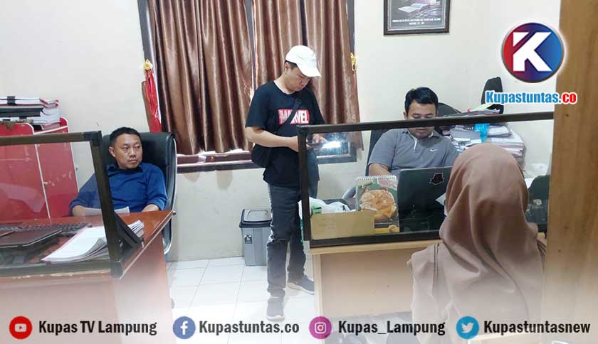 Polisi saat memriksa saksi di ruang Unit I Jatanras Satreskrim Polresta Bandar Lampung. Foto: Martogi/kupastuntas.co