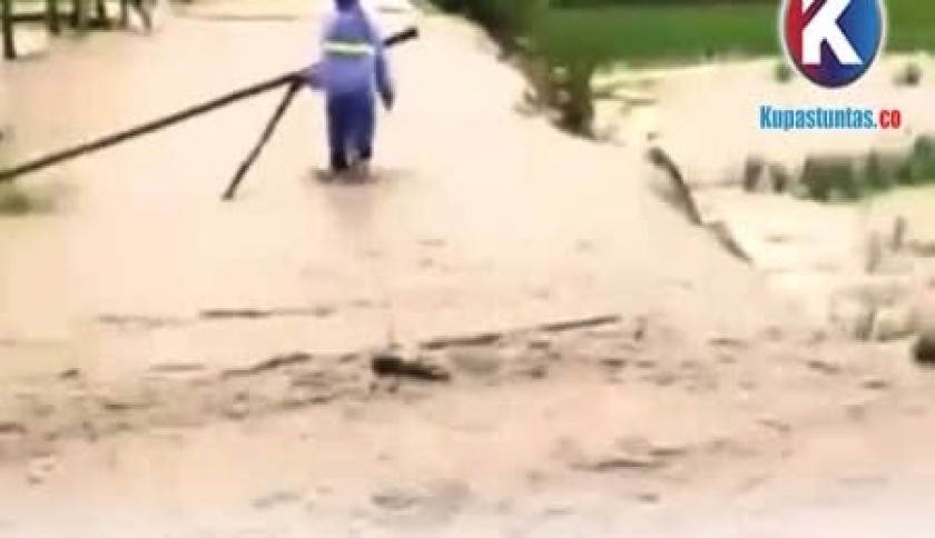 “Air naik cepat sekali, padi sudah mulai terendam semua. Kalau begini terus bisa gagal panen,” ujar salah satu petani setempat.