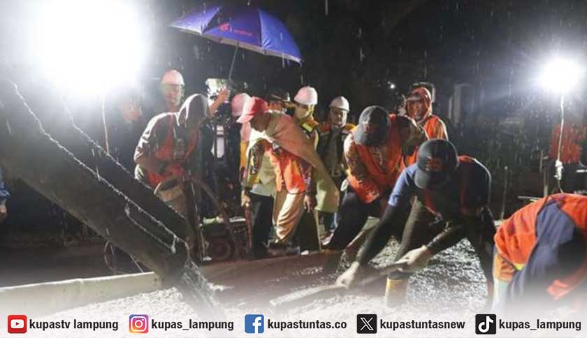 Kupastuntas.co, Lampung Tengah – Bupati Lampung Tengah, Ardito Wijaya, turun langsung meninjau proses perbaikan jalan di Kampung Srisawahan, Kecamatan Punggur, pada Selasa malam (21/10/2025). Peninjauan malam hari ini dilakukan untuk memastikan pekerjaan rigid beton di ruas jalan tersebut berjalan sesuai standar dan tepat waktu.