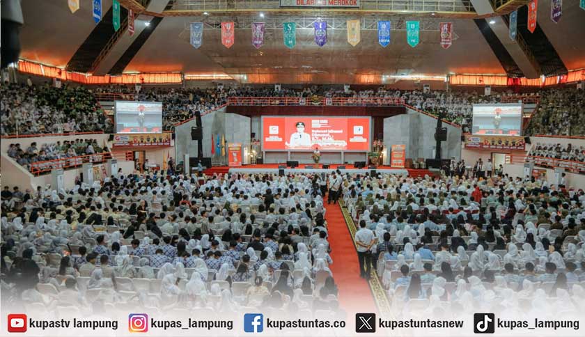 Gubernur Mirza di hadapan ribuan siswa yang memadati aula Unila.