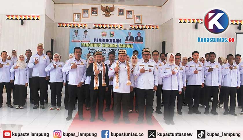 Bupati Tanggamus H. Mohammad Saleh Asnawi secara resmi mengukuhkan Pengurus Karang Taruna Kabupaten Tanggamus masa bhakti 2025–2030. Foto: Sayuti/Kupastuntas.co