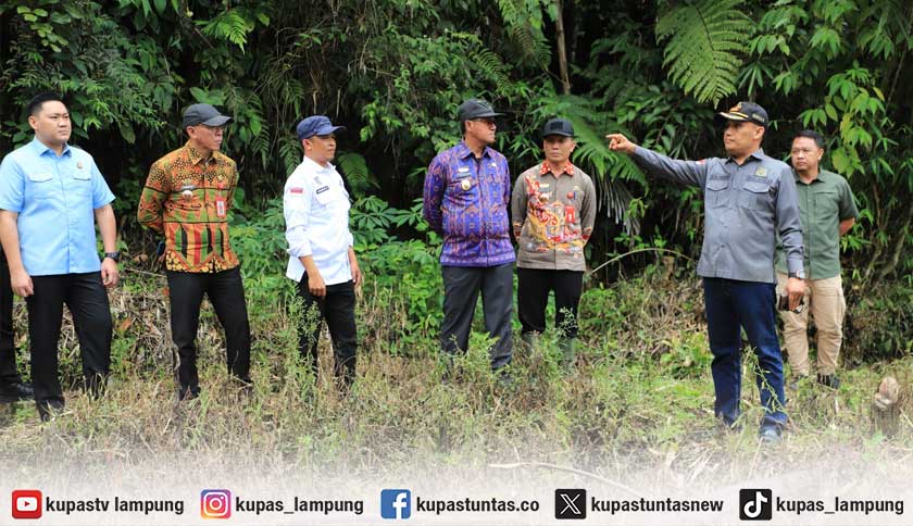 Sekretaris Daerah (Sekda) Lampung Barat Nukman bersama jajaran dan Kepala Kejaksaan Negeri Lampung Barat, M. Zainur Rochman, saat meninjau lahan tidur yang akan kembali dikembangkan menjadi lahan pertanian di Pekon Tanjung Raya, Kecamatan Sukau. Foto: Ist