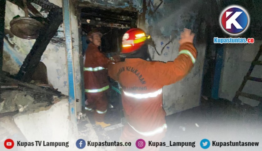 Kupastuntas.co, Bandar Lampung - Kebakaran melanda sebuah rumah semi permanen di Jalan Ikan Kiter Gang Masjid, RT 014 LK II, Kelurahan Kangkung, Kecamatan Bumi Waras, Kota Bandar Lampung, Minggu (26/10/2025) malam.