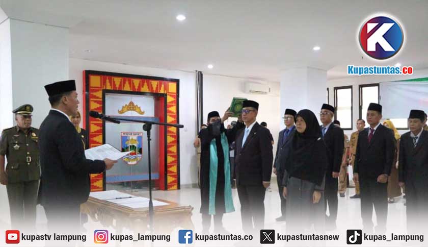Bupati Pesisir Barat (Pesibar), Dedi Irawan melantik sejumlah pejabat. Foto: Ist