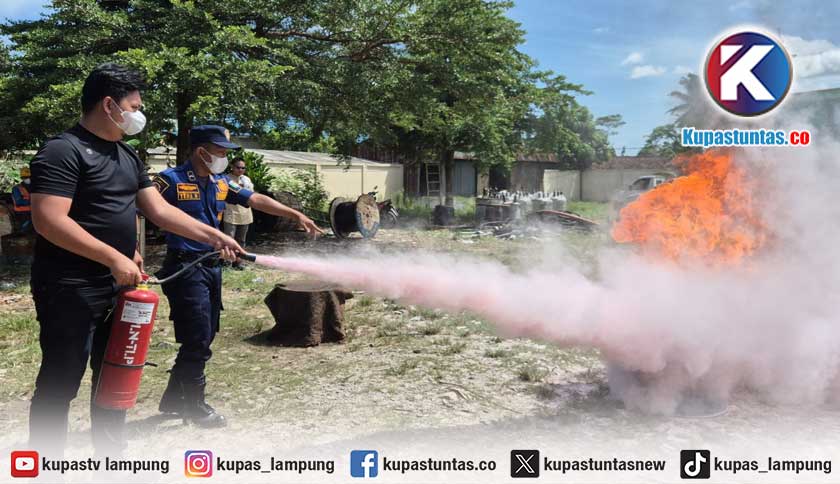 Setelah penyampaian materi, peserta mengikuti praktik pemadaman api menggunakan karung goni basah dan APAR, dipandu oleh Satgas Damkar Pringsewu. Seluruh peserta diberi kesempatan memadamkan api secara langsung untuk membiasakan diri dengan prosedur lapangan. Kegiatan juga dilanjutkan dengan simulasi evakuasi gempa menggunakan teknik Drop, Cover, and Hold On serta tata cara penyelamatan yang aman.