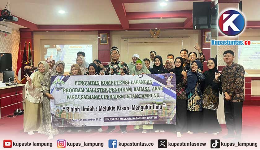 Kupastuntas.co, Bandar Lampung - Dalam rangka memperingati Hari Bahasa Arab Sedunia, Penguatan Kompetensi Mahasiswa (PKL) Program Studi Magister PBA Pascasarjana UIN Raden Intan Lampung bersama PBA Pascasarjana UIN Sultan Maulana Hasanuddin Banten menyelenggarakan rangkaian kegiatan akademik berupa Seminar Internasional dan Diskusi Ilmiah Bersama pada Senin, 15 Desember 2025.