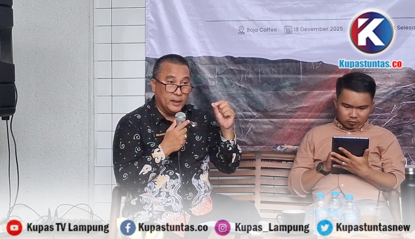 KSDAE dan Pengamanan Hutan Dinas Kehutanan Provinsi Lampung, Zulhaidir, dalam diskusi publik di Bandar Lampung kamis (18/12/2025). Foto: Yudi/kupastuntas.co
