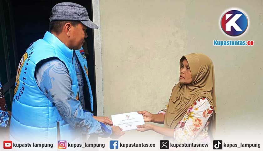 Kupastuntas.co, Bandar Lampung - Sebagai bentuk kepedulian, Pemerintah Kota Bandar Lampung memberikan tali asih kepada warga Kelurahan Gunung Sari dan Kelurahan Pelita, Kecamatan Enggal, yang terdampak bencana angin puting beliung beberapa waktu lalu.