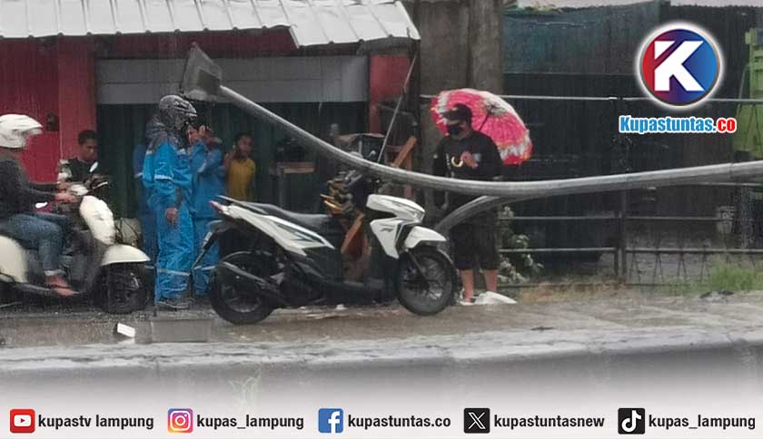 Kupastuntas.co, Bandar Lampung - Sebuah tiang lampu jalan roboh dan menimpa seorang pengendara sepeda motor di Jalan Bypass Soekarno-Hatta, Kota Bandar Lampung, Kamis (8/1/2026).