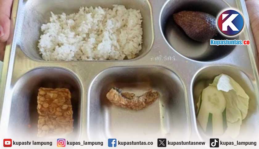Kritik bermula dari unggahan foto menu MBG yang diterima siswa. Dari foto yang diterima Kupas Tuntas, menu makanan terlihat hanya terdiri dari nasi, tempe, buah salak, timun, kol, serta potongan daging fillet berukuran sangat kecil.