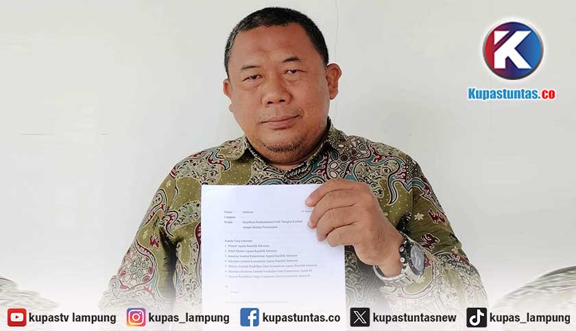 Dosen UIN Jurai Siwo Kota Metro, Lampung, Prof. Dr. Suhairi saat menunjukkan salinan surat yang telah dikirimkan ke Kemenag RI. Foto: Arby/kupastuntas.co