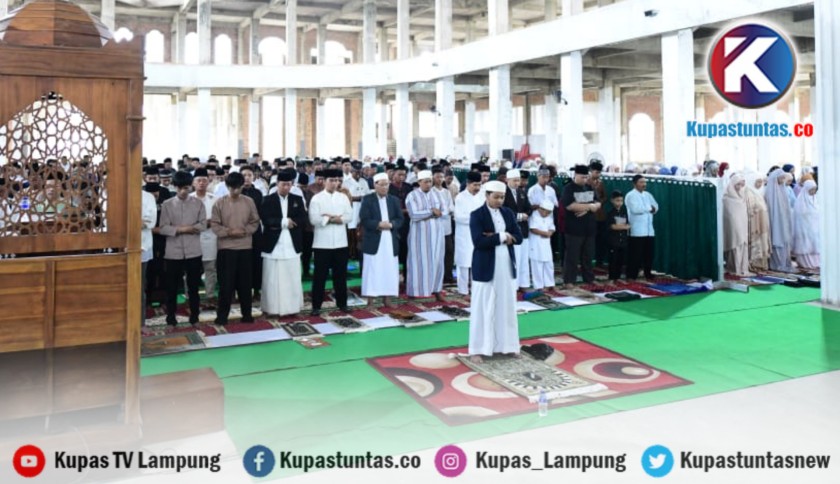 Kupastuntas.co, Lampung – Momen pelaksanaan Sholat Idul Fitri 1 Syawal 1447 Hijriah di Masjid Agung Al Hijrah Kota Baru Lampung semakin istimewa dengan dipercayakannya seorang mahasiswa sebagai imam, Sabtu (21/3/2026).