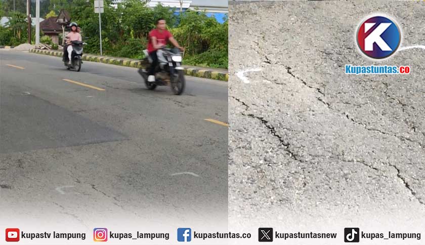 Pengendara Keluhkan Jalan Retak di Lampung Barat Tak Kunjung Diperbaiki