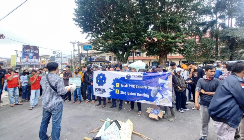 "Orang yang mau merebut haknya justru dipecat, kami akan melakukan langkah-langkah yang diatur dalam undang-undang salah satunya mengirim surat kepada Disnaker. Sehingga bisa dimediasi rekan-rekan yang diberhentikan itu," tegasnya.