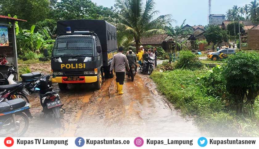 Polres Lamsel ke lokasi-lokasi yang terdampak Banjir guna membantu mengevakuasi