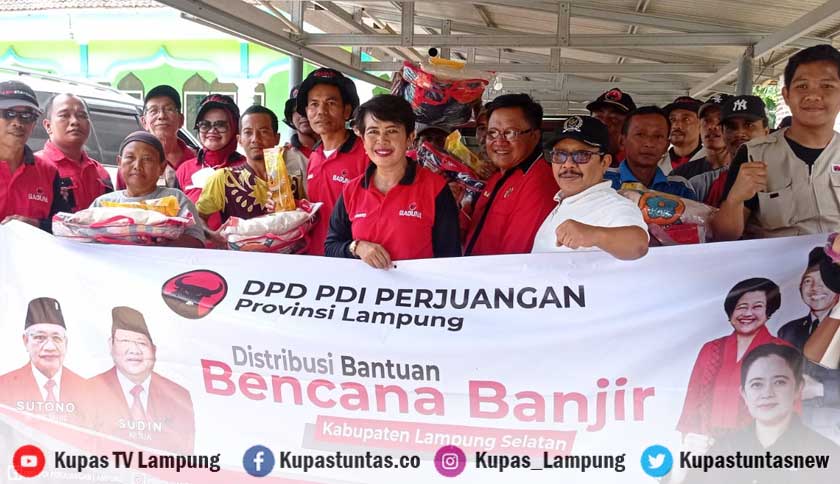 DPD PDI Perjuangan Provinsi Lampung telah menyerahkan bantuan 2 ton beras, ratusan minyak goreng dan selimut terpusat di Kantor Kecamatan Candipuro untuk di distribusikan ke 8 desa yang terdampak bencana banjir.