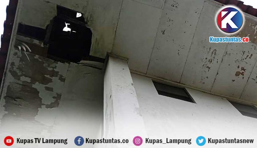 Kondisi plafon luar gedung Sekretariat DPRD Lamsel yang jebol. Foto: Handika/kupastuntas.co