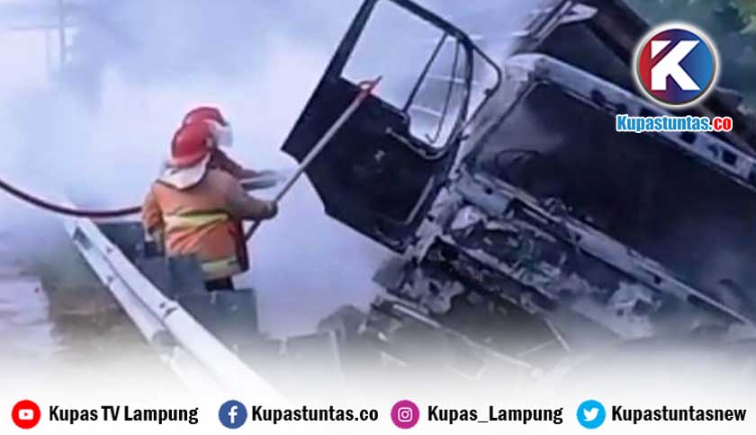 Kupastuntas.co, Lampung Selatan - Kebakaran truk pengangkut barang bekas yang terjadi di ruas tol Bakauheni-Terbanggi Besar (Bakter) KM 8, Desa Hatta, Kecamatan Penengahan, Lampung Selatan (Lamsel) disebabkan nyala api dari dalam mobil.