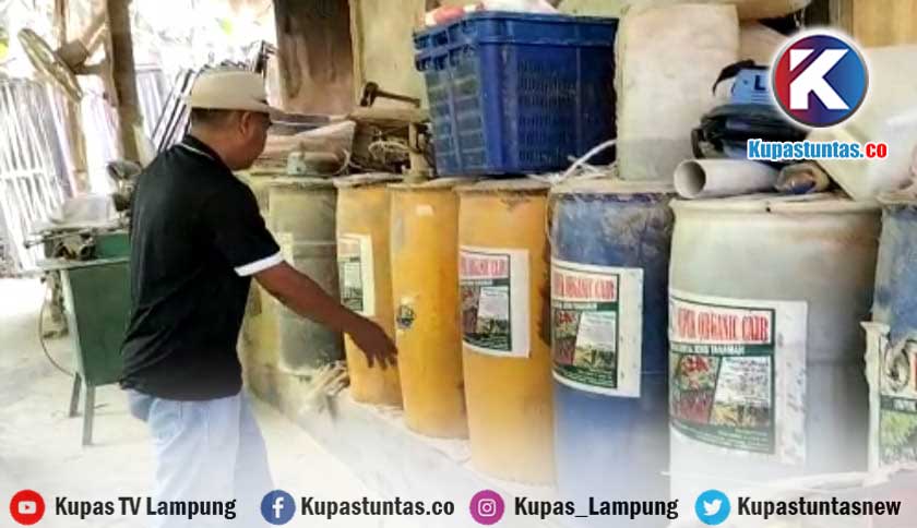 Kupastuntas.co, Lampung Selatan - Seorang pria bernama Aang Haryadi (58) warga Desa Jati Mulyo, Kecamatan Jati Agung, Kabupaten Lampung Selatan berhasil berinovasi mengolah limbah bambu menjadi pupuk cair atau disebut juga cuka bambu.