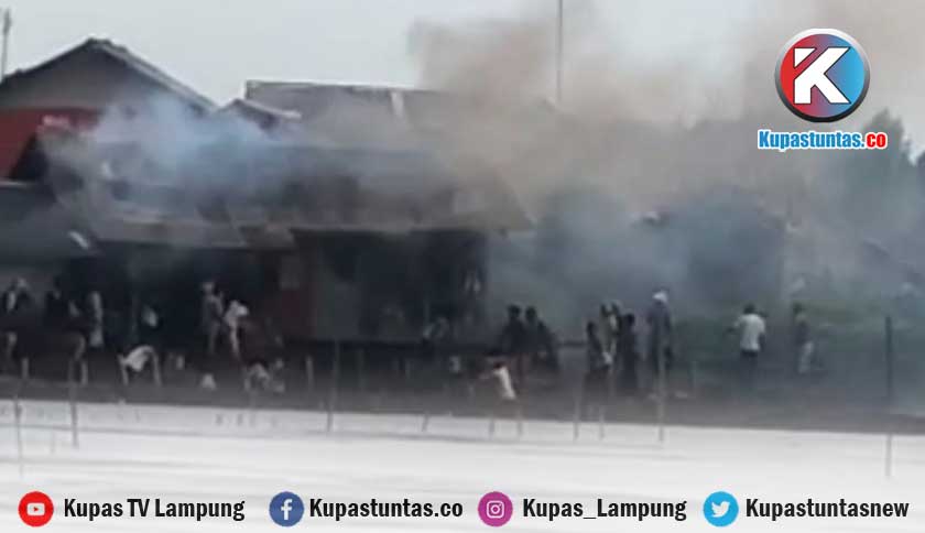 Kupastuntas.co, Lampung Selatan - Sebuah rumah warga yang tengah terbakar terekam dalam video amatir berdurasi 37 detik, tampak asap putih bercampur kelabu mengepul keatas akibat amukan si jago merah.