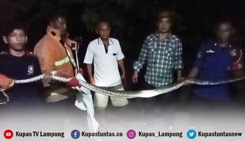 Kupastuntas.co, Lampung Selatan - Bikin resah warga, Petugas Dinas Pemadam Kebakaran dan Penyelamatan (Damkarmat) Kabupaten Lampung Selatan (Lamsel), menangkap ular sanca sepanjang 3 meter usai dilaporkan warga, Rabu malam (22/3/2023).