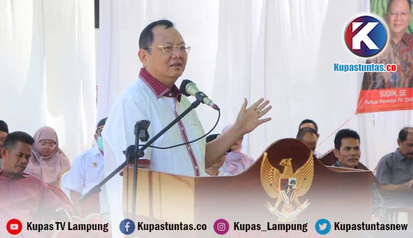 Kupastuntas.co, Lampung Selatan - Ketua Komisi IV DPR RI, Sudin, S.E. memberikan pembekalan petani melalui kegiatan bimbingan teknis (Bimtek) di Desa Legundi, Ketapang, Lampung Selatan, Rabu (12/4/2023).