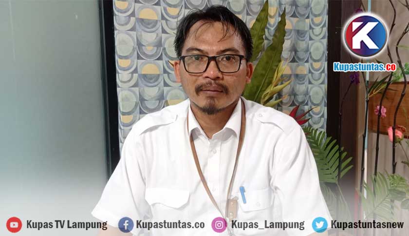 Kasi Pengadaan Tanah dan Pengembangan ATR/BPN Kantah Kabupaten Lampung Selatan, Selamet Sugianto saat dimintai keterangan di ruang mediasi. Rabu (3/5/2023). Foto: Handika/Kupastuntas.co