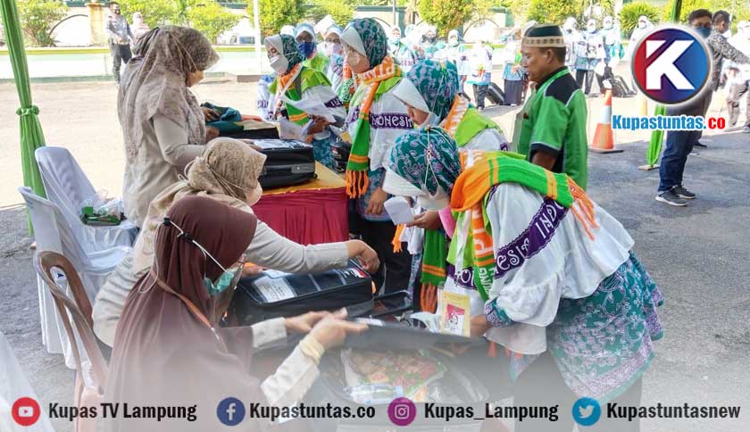 Jamaah haji Lampung saat memasuki asrama haji Rajabasa. Foto: Dok/kupastuntas.co
