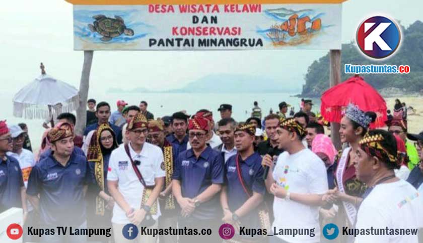 Kupastuntas.co, Lampung Selatan - Menteri Pariwisata dan Ekonomi Kreatif (Menparekraf) Republik Indonesia, Sandiaga Salahuddin Uno mengaku terkesima dengan keindahan konservasi Pantai Minang Rua dan Desa Wisata Kelawi, Kecamatan Bakauheni, Kabupaten Lampung Selatan (Lamsel).