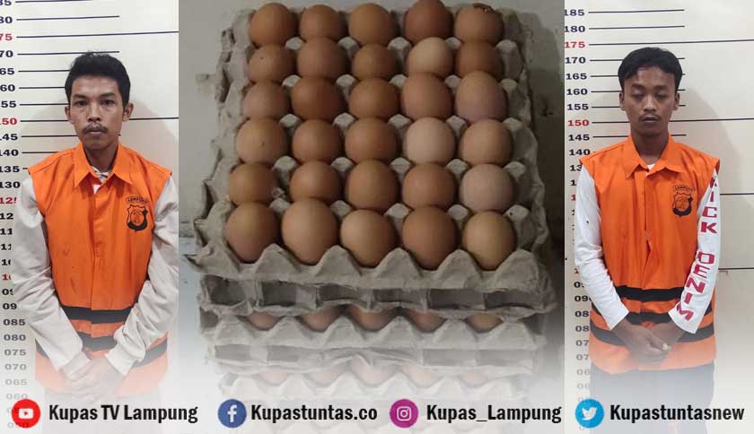 Kupastuntas.co, Lampung Selatan - Dua orang pelaku pencurian dengan pemberatan (Curat) sejumlah 360 butir telur milik PT Kalianda Farm yang terletak di Desa Tajimalela, Kecamatan Kalianda, Kabupaten Lampung Selatan (Lamsel) yakni Rustamin (28) dan Sariyanto (25) ditangkap polisi.