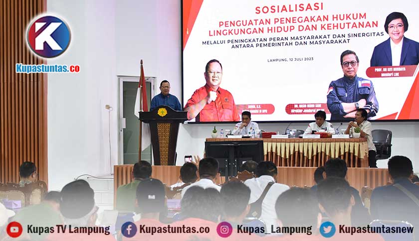 Hal itu diungkapkan Sudin yang juga Ketua DPD PDI Perjuangan Lampung saat memberikan arahan pada sosialisasi penguatan penegakan Hukum lingkungan hidup dan kehutanan melalui peningkatan peran masyarakat dan sinergitas antara pemerintah dan masyarakat, di Aula Balai Pelatihan Pertanian Lampung, Hajimena, Kecamatan Natar, Kabupaten Lampung Selatan (Lamsel), Rabu (12/7/2023).