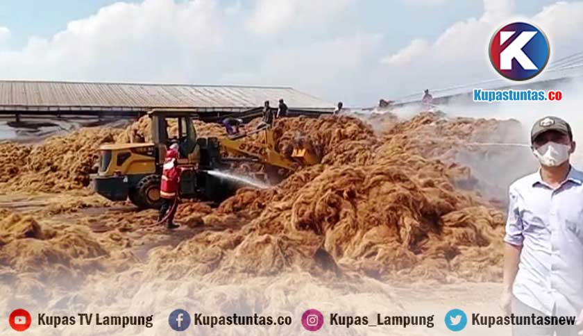 Kupastuntas.co, Lampung Selatan - PT Woongsol Nature Indonesia yang terletak di Dusun Damarkopong, Desa Sukabanjar, Kecamatan Sidomulyo, Lampung Selatan (Lamsel), kembali mengalami kebakaran, Selasa (18/7/2023) siang.