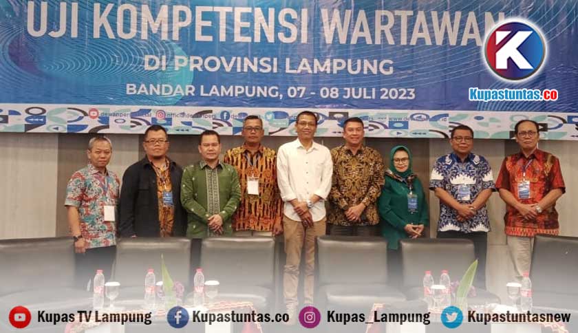 Anggota kelompok kerja pada Komisi Pengaduan dan Penegakan Etika Pers Dewan Pers, Rustam Fachri Mandayun (paling kanan) saat menjadi penguji UKW di Provinsi Lampung. Foto: Handika/Kupastuntas.co