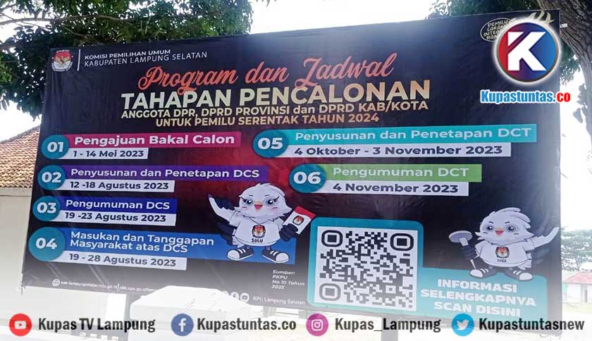 Papan tahapan Pemilu di Kantor Sekretariat KPU Lamsel. Foto: Handika/kupastuntas.co