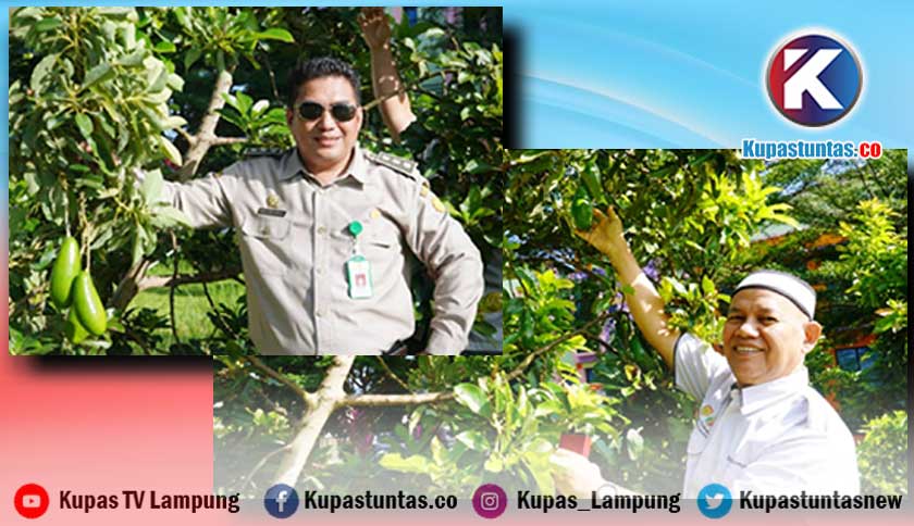 Bersama dengan Widyaiswara Ahli Utama Bapeltan Lampung, Hasan Basri dab Koordinator Lapangan yang juga Widyaiswara Ahli Muda Bapeltan Lampung, Ichwanuddin, Abdul Roni Angkat dengan bangga menunjukkan beberapa pohon alpukat yang sudah berbuah dan sudah mulai dapat dipanen.