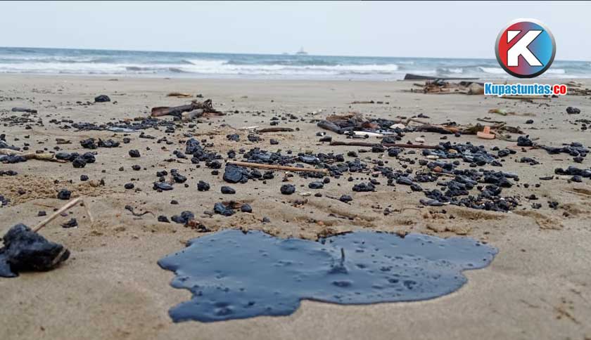 minyak mentah atau ter ditemukan di sepanjang bibir Pantai Kedu Warna,