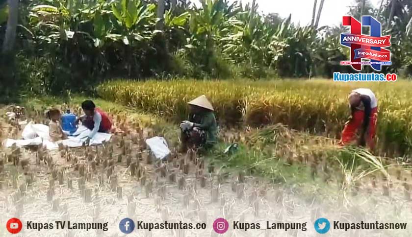 Kupastuntas.co, Lampung Selatan - Kekeringan lahan sawah kurun waktu 2 bulan terakhir memaksa petani di Kecamatan Ketapang, Kabupaten Lampung Selatan (Lamsel), memanen padi yang baru berusia 70 hingga 80 hari.