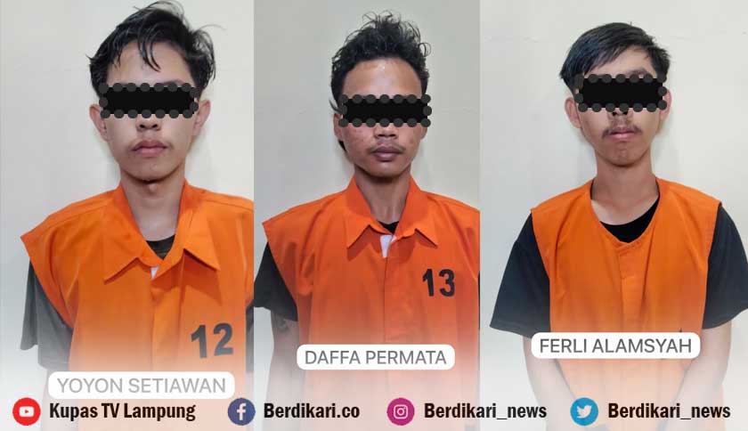 oyon Setiawan (20), Daffa Permata (22), dan Ferly Alamsyah (19), tiga dari empat pelaku pembobolan SD di Way Urang Lampung Selatan. Foto: Ist