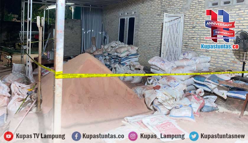 Gudang pembuatan pupuk palsu di Desa Palembapang, Kecamatan Kalianda pasca digerebek polisi. Foto: Ist