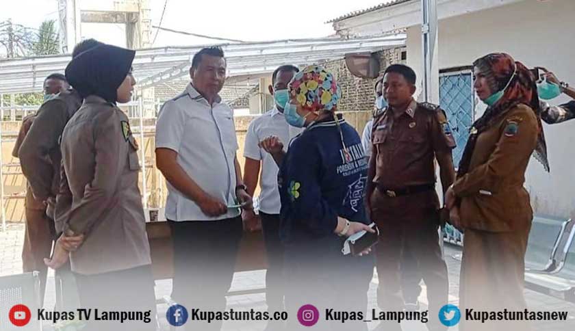 Tampak dokter Andriani (kaos biru tua) saat menyampaikan hasil autopsi mayat anonim kepada Kasat Reskrim Polres Lamsel AKP Hendra Saputra (kemeja putih), Senin (11/9/2023). Foto: Handika/kupastuntas.co