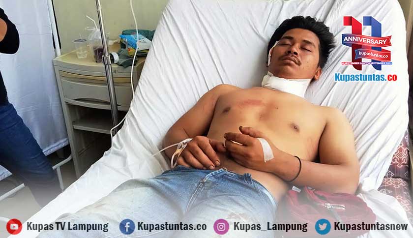 Korban Andre Hadi (25) seorang sopir travel saat dirawat di RSUD Bob Bazar Kalianda. Foto: Handika/kupastuntas.co