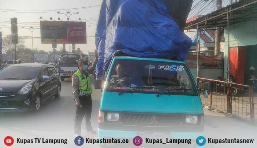 Anggota Polres Lamsel saat menilang pengendara dengan muatan berlebih dalam rangka Operasi Zebra Krakatau 2023. Foto: Ist