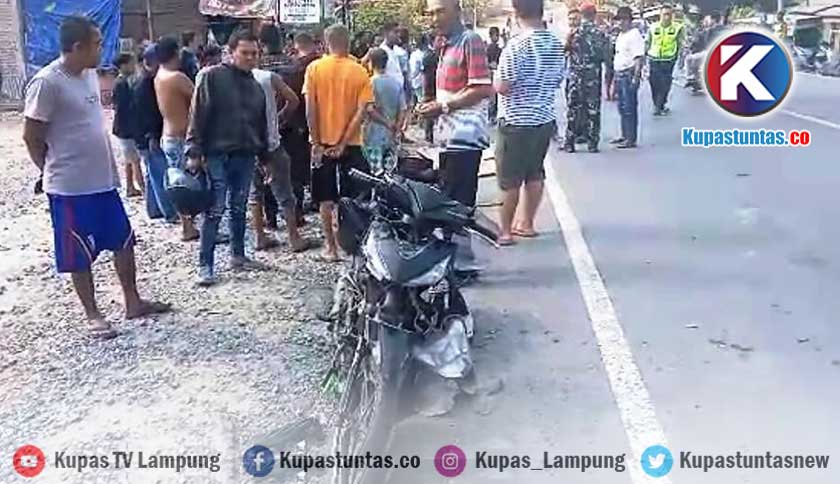 Kupastuntas.co, Lampung Selatan - Seorang pemotor bernama Satria Gitya Putra Prakoso (19), tewas usai mengalami pecah ban dan tertabrak truk box Hino Nopol B 9850 KXS di KM 3 Jalinsum Desa Bakauheni, Kecamatan Bakauheni, Kabupaten Lampung Selatan (Lamsel), Kamis (28/9/2023) sekitar pukul 07.30 WIB.