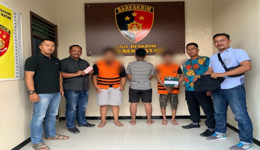 Ketiga pelaku saat diamankan polisi di Polsek Natar. Foto: Ist