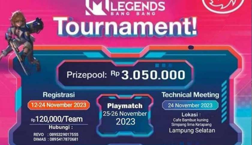 bakal menggelar turnamen game Mobile Legend tanggal 25-26 November 2023, dengan