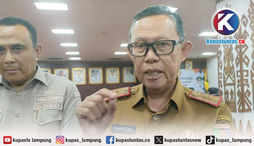 Sekretaris Daerah Provinsi Lampung, Fahrizal Darminto saat dimintai keterangan usai rapat koordinasi penanganan dampak bencana banjir di ruang Abung, Selasa (27/2/2024). Foto: Ria/kupastuntas.co