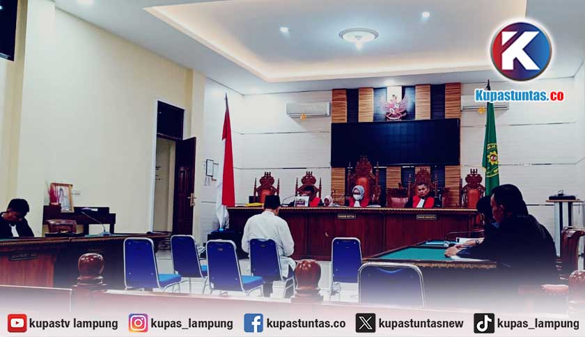 Suasana persidangan di Pengadilan Negeri (PN) Tanjung Karang dengan agenda Pledoi terdakwa Ujang Faishal, kasus dugaan penggelapan dana Korpri Way kanan. Rabu (06/03/2024). Foto: Yudi/Kupastuntas.co